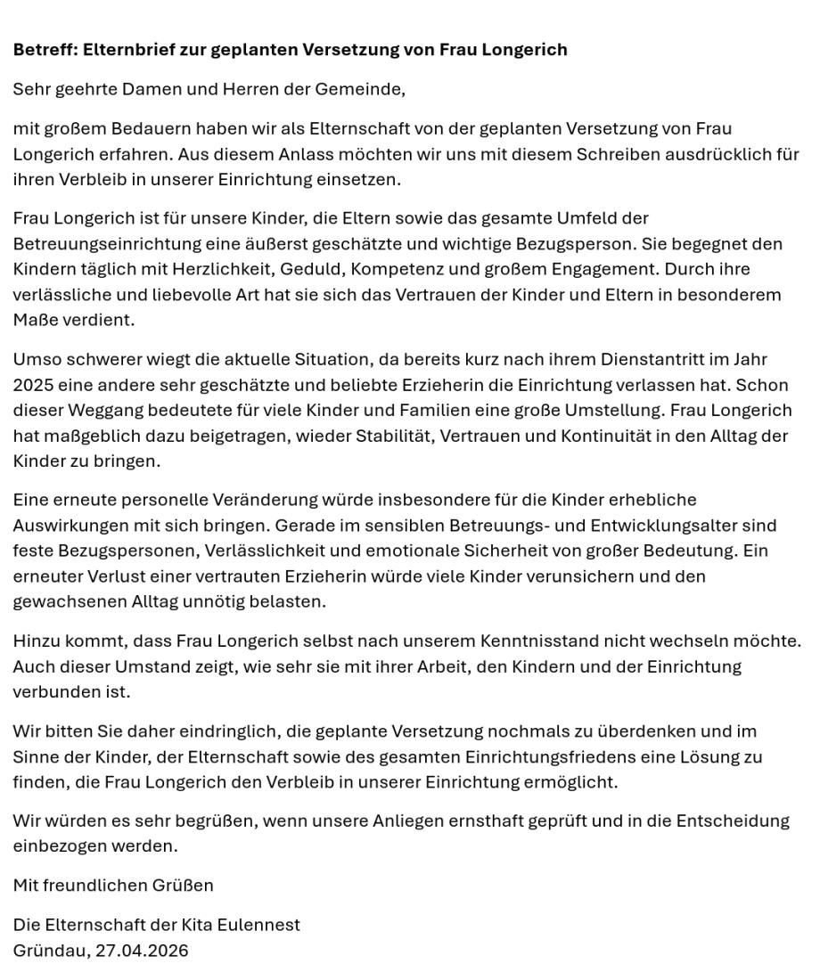 Eltern der KiTa Eulennest Verfasser der Petition kontaktieren